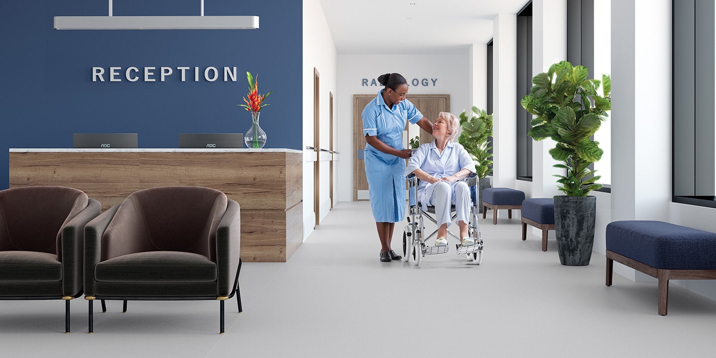 Pavimento vinilico antisdrucciolo, autoposante per l’installazione senza adesivo.