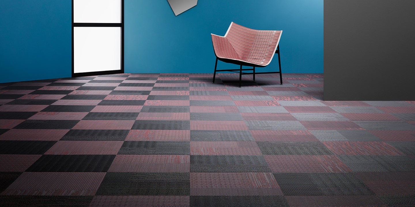 Rispetto alla versione in teli, i disegni in quadrotte autoposanti non richiedono la ricomposizione, permettendo di ottenere un effetto “disegnato” ma a “correre” anche su un’ipotesi di pavimento a piastre idoneo per pavimenti sopraelevati.